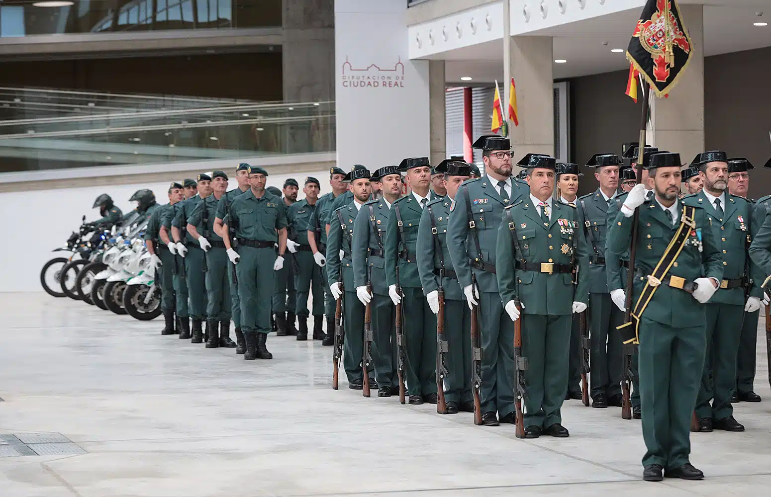 En un acto que ha comenzado son del himno nacional, con sesenta guardias civiles de las diferentes brigadas presentes en Ciudad Real en formación, el subdelegado del Gobierno ha destacado que “la Guardia Civil no solo es una fuerza de seguridad, sino un símbolo de resiliencia a lo largo de 180 años”, que, según ha añadido, “ha demostrado ser una institución sensible y moderna capaz de enfrentar los desafíos del presente y del futuro”.