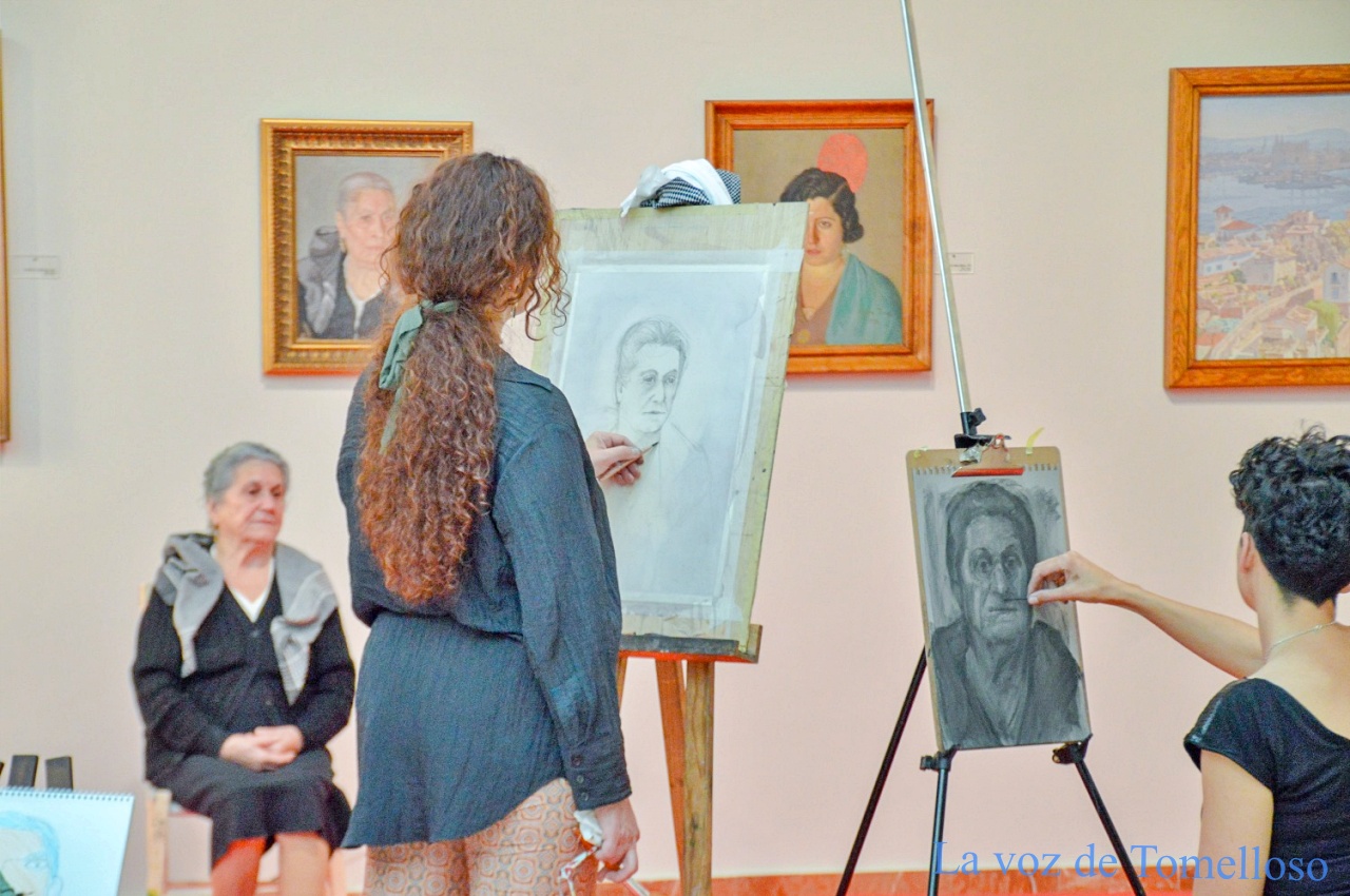 Dejamos a los artistas dibujando —en un silencio solo roto por el trazo de los lápices y carboncillos— sobre sus láminas lo que a cada uno le transmite el cuadro de López Torres o María posando.