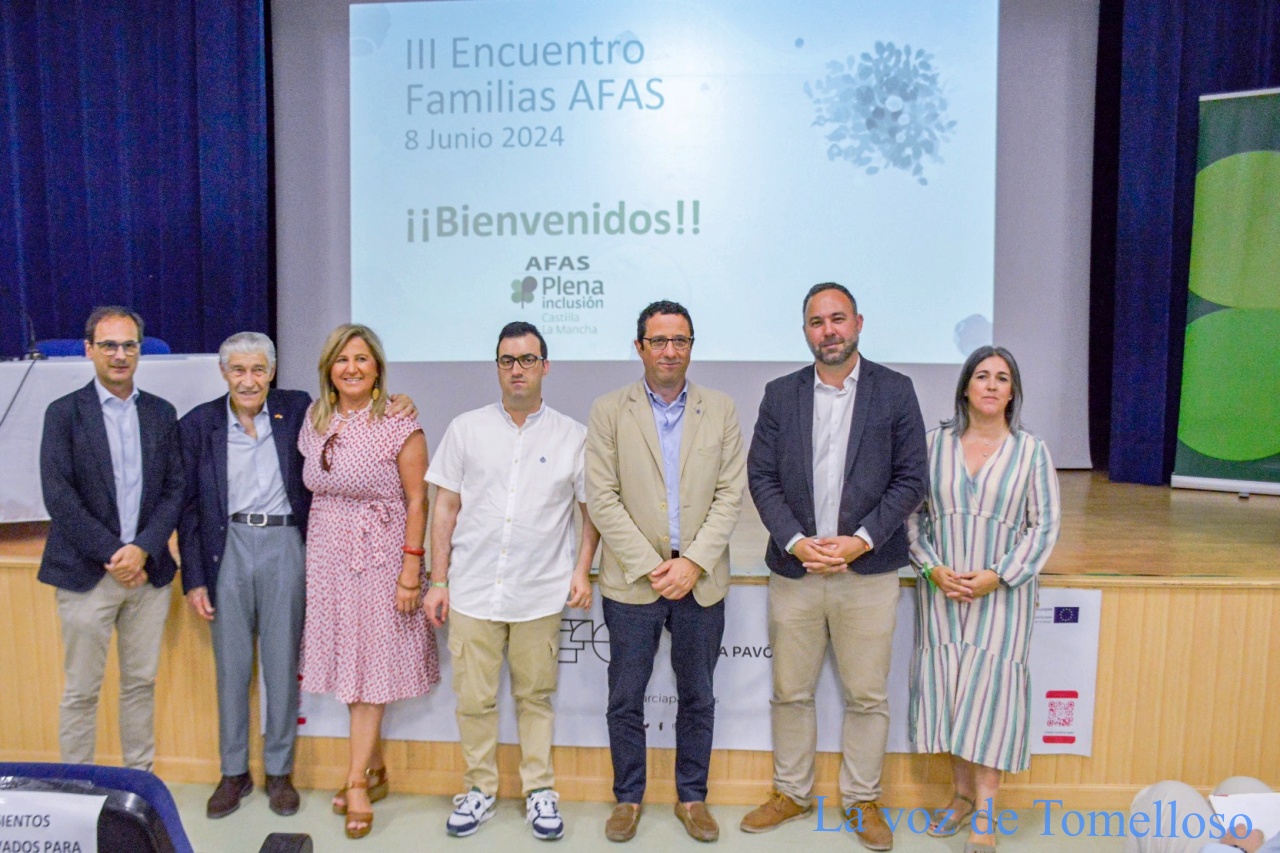 Juntos construyendo un futuro más incluso es el esperanzador nombre con el que AFAS está celebrando este sábado en Tomelloso su III Encuentro de Familias. Una jornada que se va a prolongar durante todo el dia y que echaba a andar a las 10 de la mañana en el salón de actos del Instituto Francisco García Pavón. Participan en el encuentro 130 familias, lo que supone unas 200 personas además de una treintena de profesionales y otros tantos voluntarios. Han inaugurado el acto, el presidente de AFAS, Luis Perales; Tomás Daniel Moreno Matamoros en representación de las personas con discapacidad; el director general de Discapacidad de la Junta, Francisco José Armenta y el alcalde de Tomelloso, Javier Navarro. La concejala de Servicios Sociales, Elena Villahermosa y la teniente de alcalde, Eloísa Perales, han acudido a la jornada.