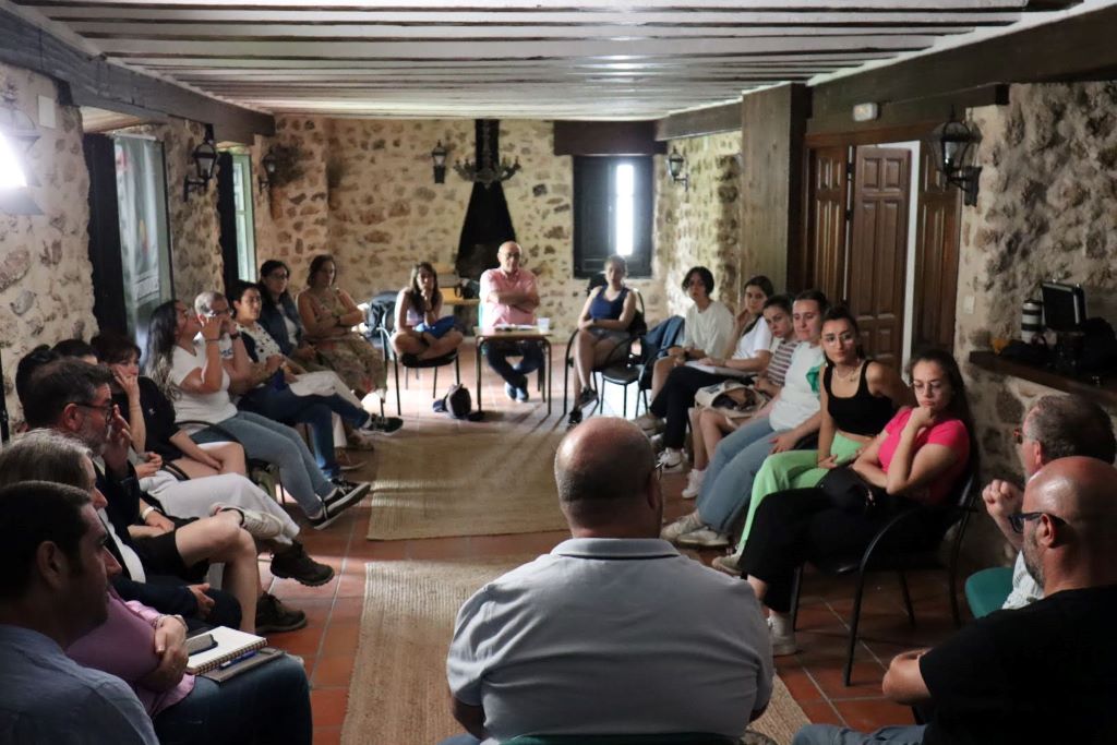 Estas jornadas continuaron en Tragacete con la celebración de un taller dialógico que bajo el título “Dinamización local desde la escuela rural” reunió a profesionales de diversos niveles educativos como Emilio Guadalajara, Ángel González, Juan María Villagarcía o Raquel Fernández Cézar para debatir sobre la importancia las escuelas para dinamizar y fortalecer las comunidades rurales, poniendo sobre la mesa la necesidad de contemplar la escuela rural no sólo como un derecho o un requisito sino como una oportunidad para afrontar el reto demográfico . Esta mesa redonda estuvo precedida por la presentación de arquitectura pastoril a cargo de Emilio Guadalajara a la que se incorporaron los estudiantes participantes en la residencia cultural “Trashumancias 2.4” que se encuentran estos días realizando sus proyectos en Tragacete.