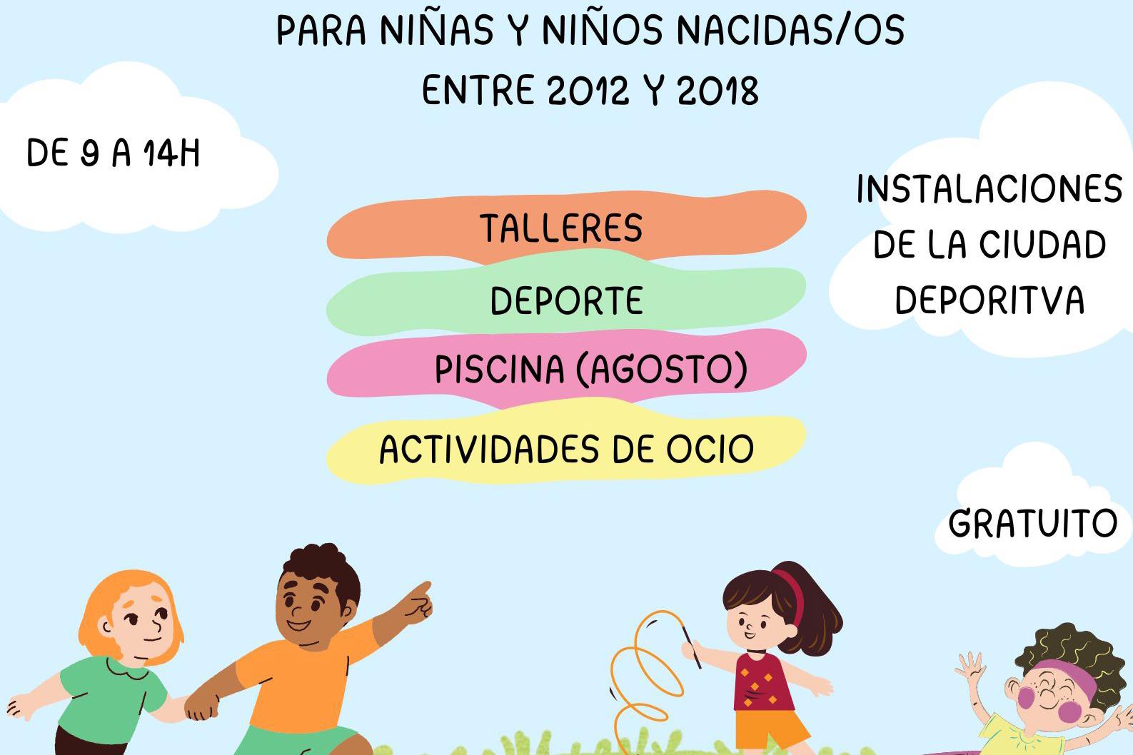 Este campamento que se programa por primera vez, estará centrado en desarrollar actividades artísticas, de ocio y de deporte con los menores participantes. Se prestará en las instalaciones deportivas municipales y la piscina de verano en dos turnos, del 1 al 14 de agosto y del 2 al 6 de septiembre, en horario de 9:00 a 14:00 horas de lunes a viernes. Serán beneficiarias las familias empadronadas en Tomelloso con menores que hayan cursado durante el último año educación primaria, es decir, niños nacidos entre 2012 y 2018.