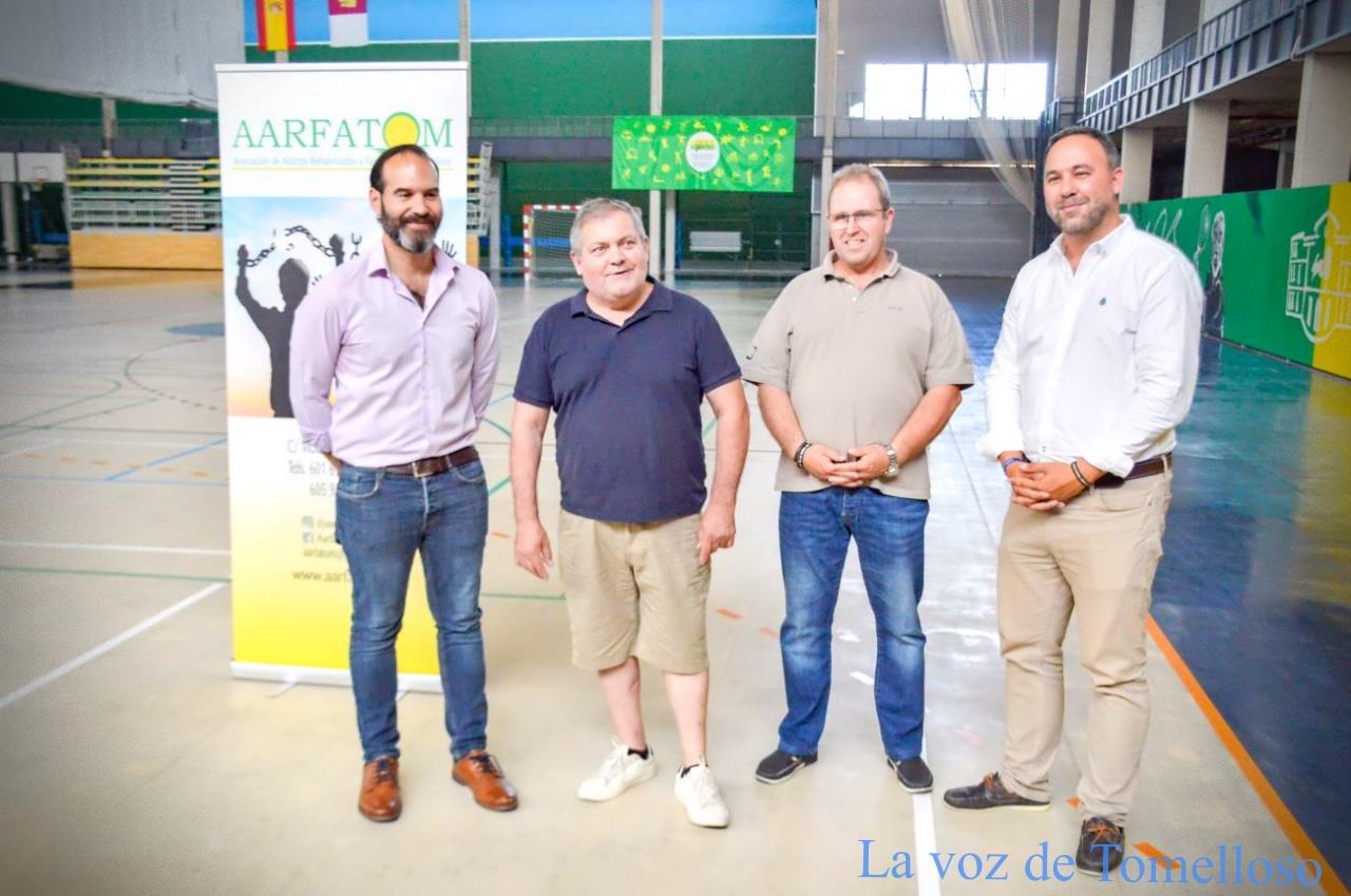 El alcalde, Javier Navarro; el concejal de Deportes, Benjamín de Sebastián y el presidente de AARFATOM, Vicente Linares, han presentado este viernes las 24 horas de Fútbol-Sala de AARFATOM "Memorial Candelas Lara" que tendrán lugar los próximos 21 y 22 de junio en el pabellón de la Ciudad Deportiva. El torneo comenzará el viernes a las 4 de la tarde y la final está prevista para el sábado a las 14,00 horas. El maratón va destinado a jóvenes nacidos entre los años 2003 y 2009 y hasta el 17 de junio permanecerá abierto el plazo de inscripción.