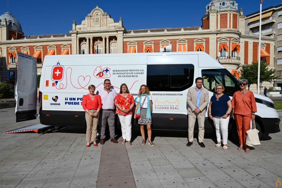 La Hermandad de Donantes de Sangre de Ciudad Real cuenta con un nuevo vehículo donado por la Diputación para continuar con su labor de captación en la provincia de Ciudad Real. Un vehículo que cuenta con todos los equipamientos necesarios, isotermo para que la sangre se mantenga a la temperatura adecuada, y que incluye una fila de asientos que permitirá el transporte de seis personas y una rampa levadiza que mejorará la carga y descarga del material necesario para la extracción de sangre y plasma.