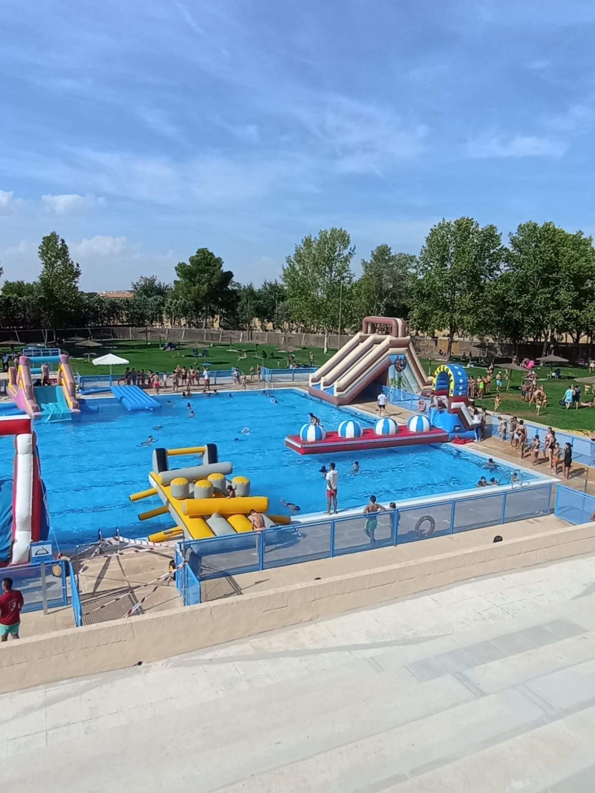 Alrededor de cuatrocientos usuarios de la piscina de verano, en su mayoría niños y jóvenes, han disfrutado este domingo de la gran fiesta acuática y deportiva con hinchables. Organizada por el Área Municipal de Deportes de Tomelloso la actividad ha contado con una tobogán acuático gigante, el doble tobogán gigante, el juego del pasillo deslizador, un hinchable de subida doble con obstáculos y dos pasarelas acuáticas dobles. Con el intenso calor el día invitaba a participar en la actividad, una de las últimas en la densa programación deportiva de las ferias y fiestas que ha incluido eventos en treinta modalidades diferentes.
