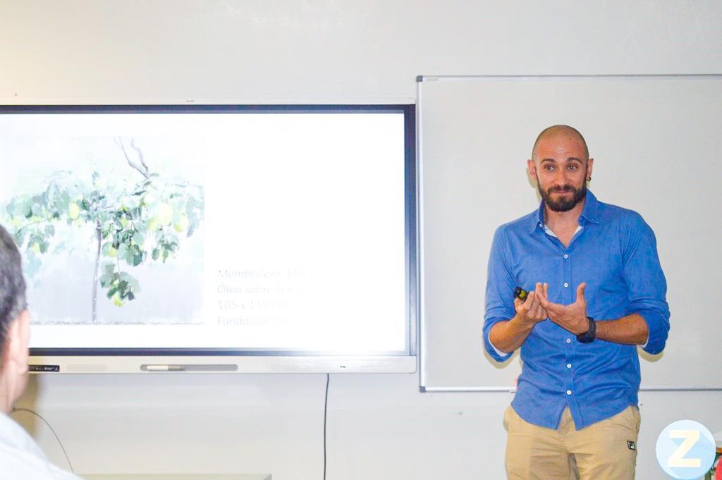 El conferenciante fue exponiendo influencias y recursos de un artista que experimentaba continuamente: aplicando sonidos en algunas de sus obras, con la dualidad interior-exterior, el espacio y con los lenguajes vanguardistas que pudo conocer. Se detuvo y analizó con detalles obras como la del “Lavabo y espejo” en la que experimenta con la perspectiva y el tiempo; “Los membrillos” o ese impresionante “Madrid desde Torres Blancas” que creó en unos ocho años porque siempre pintaba el mismo día y a la misma hora: las 21:40 y que fue subastado en 1,7 millones de euros. Analizaría también ese recorrido por la Gran Vía a distintas horas del día que también le supuso años de trabajo y donde vino a expresar todas las cualidades que han acompañado a este genio. Terminaría hablando de su trayectoria como retratista de la familia real y de la obra que desde hace un año luce en Tomelloso: Carmen dormida y Carmen despierta en una deliciosa charla que a ninguno de los asistentes le hubiese importado que durara más tiempo.