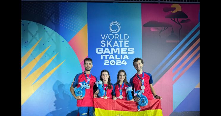 El equipo español de patinaje ha sumado dos oros, una plata y un bronce en el debut del Inline Freestyle en los World Skate Games. José Julián García y Rosa Vela se han proclamado campeones del mundo, Enrique Rubio ha sido segundo e Inma García, tercera, llevándose el bronce la tomellosera que sigue engrosando de metales su brillante palmarés.