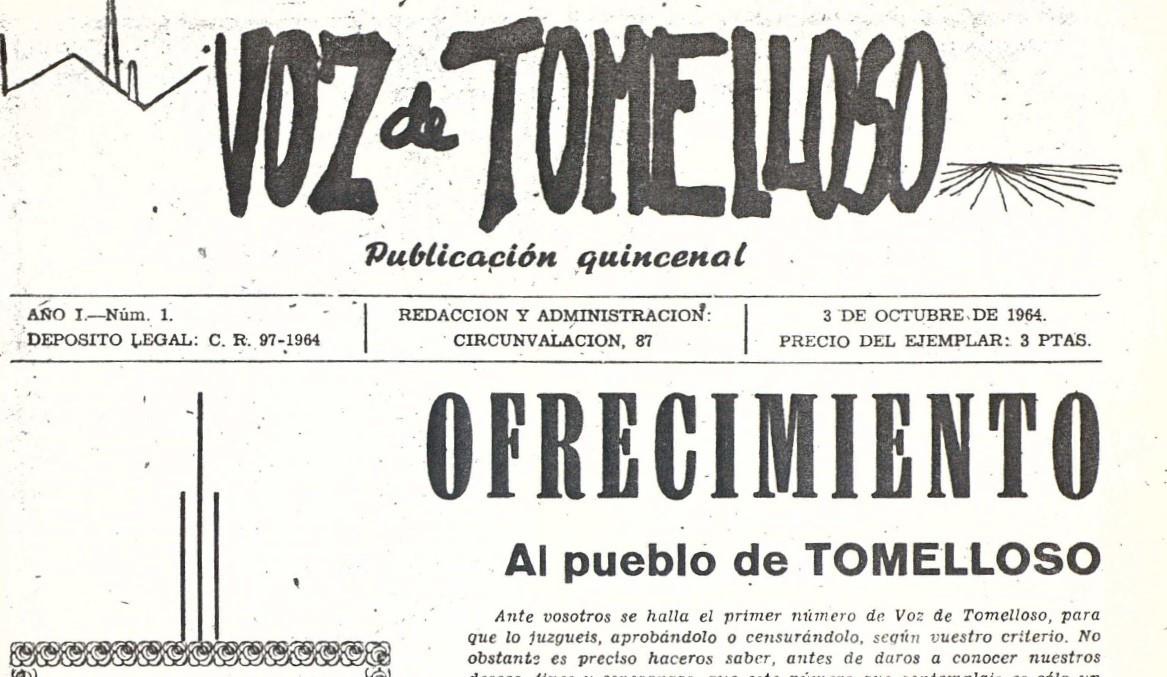 el primer número la publicación periodística de carácter quincenal “La Voz de Tomelloso” fundada y dirigida