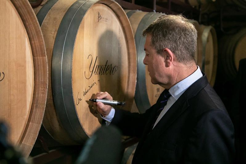 El consejero ha alabado la trayectoria de la Cooperativa Jesús del Perdón-Bodegas Yuntero que, a lo largo de sus 70 años de vida, ha ido abordando procesos de unión y fusión con otras cooperativas, aumentando así su capacidad productiva, sus instalaciones, que ha ido ampliando y mejorando, y sus posibilidades de comercialización. En la actualidad cuenta con más de 1.000 socios y más de 17.000 hectáreas de viñedo.