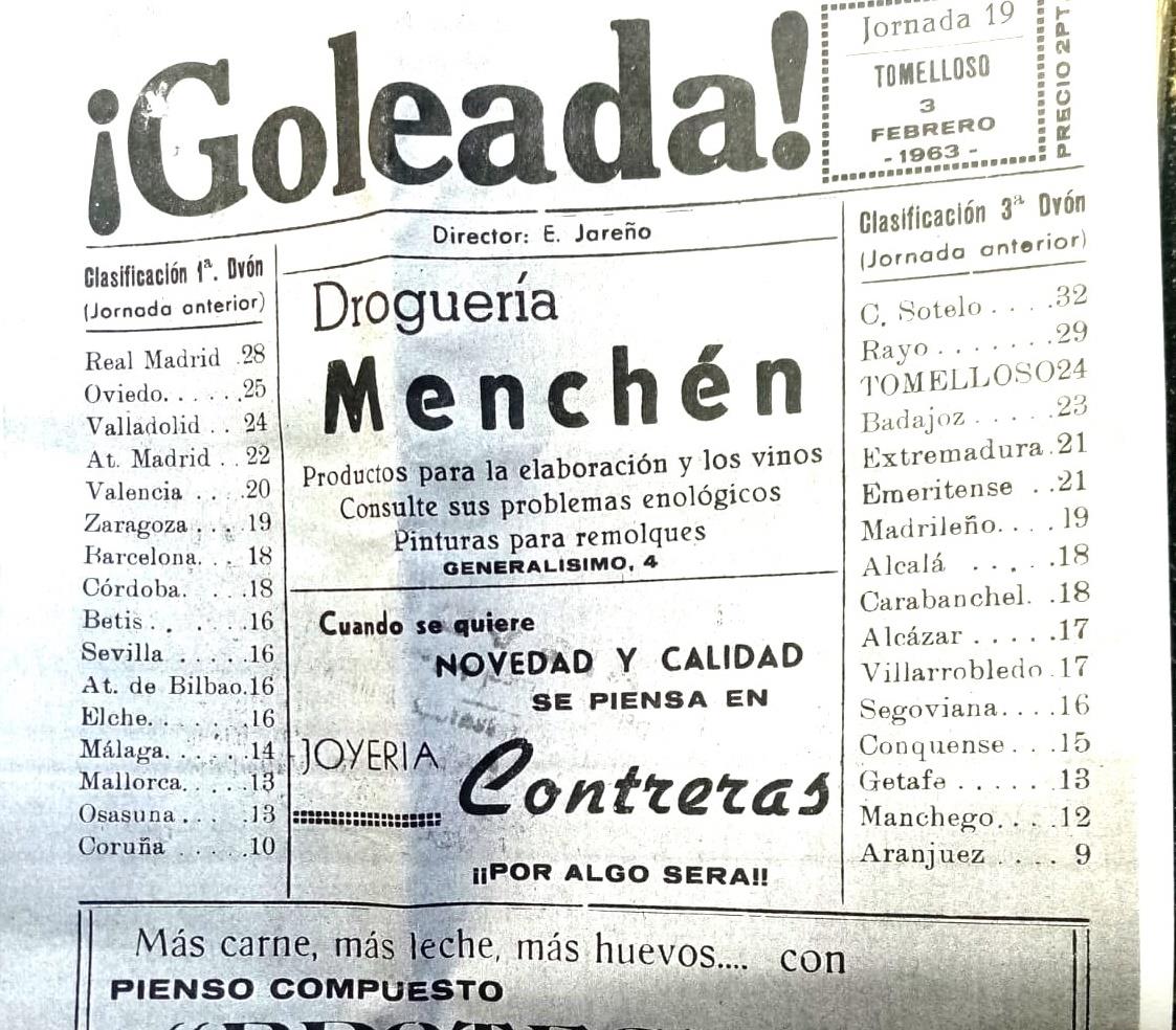 La foto corresponde al que salió el 3 de febrero de 1963. Aquel domingo, ¡Goleada! se hacía eco de la victoria del Tomelloso, 1-0 al Conquense, que le colocaban en el tercer puesto del grupo en la jornada 19, solo superado por Calvo Sotelo y Rayo.