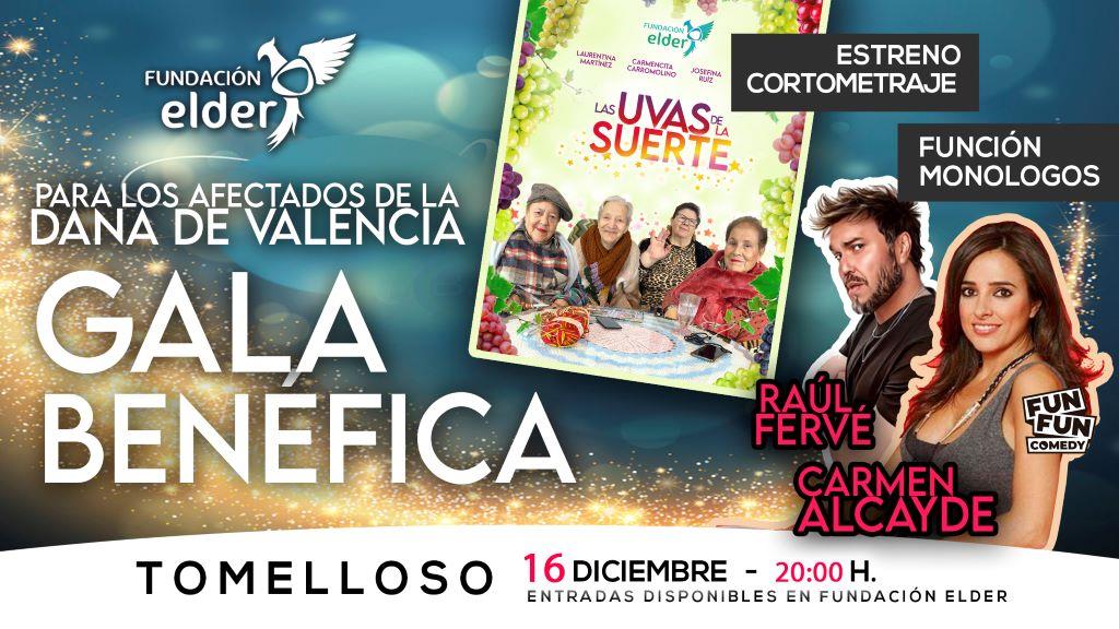 Una «GALA BENÉFICA PARA LOS AFECTADOS DE LA DANA DE VALENCIA» en la que las personas mayores que viven en la Fundación Elder de Tomelloso también le darán la bienvenida a la Navidad por todo lo alto. Será con el estreno de su ya tradicional cortometraje en el que un año más intentarán hacernos reflexionar sobre lo verdaderamente importante en estos días tan señalados. Se titula Las Uvas de la Suerte y estará protagonizado por Carmen Carramolino, Laurentina Martínez, Carmen Carrasco y Josefina Ruiz, de 86, 85, 80 y 67 años respectivamente y que llevan viviendo 6, 3, 2 y 8 años en la Fundación Elder. Todas ellas intentarán ayudar a las personas mayores que resultaron afectadas por la DANA de Valencia. Lo harán de una sorprendente manera al no poder desplazarse hasta allí para retirar lodo o para trabajar de una manera más activa debido a su avanzada edad. Sin embargo, por el camino descubrirán que este tipo de catástrofes tienden a ampliar las desigualdades existentes. De hecho las personas mayores suelen ser siempre uno de los grupos más perjudicados según un estudio realizado por HelpAge Internacional.