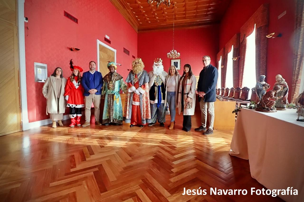 Melchor, Gaspar y Baltasar, acompañados por el alcalde,