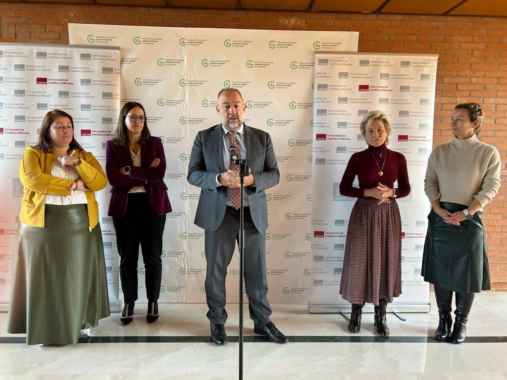 La presentación de la cátedra ha contado con la presencia de la directora de divulgación científica de la Fundación Científica de AECC, Naiara Cambas; la directora de la Agencia de Investigación de Castilla-La Mancha, Rosario Serrano Vargas; la delegada provincial de Sanidad en Albacete, Juani García; la concejala de Calidad de Vida, Participación Real y Efectiva de Albacete, Llanos Navarro; y el diputado de Sanidad en Albacete, Francisco García.