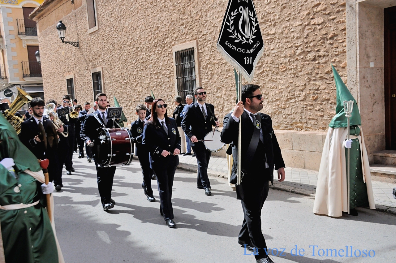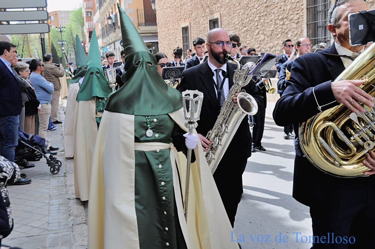 penitentes de verde y beige. La banda de la Asociación Santa Cecilia de