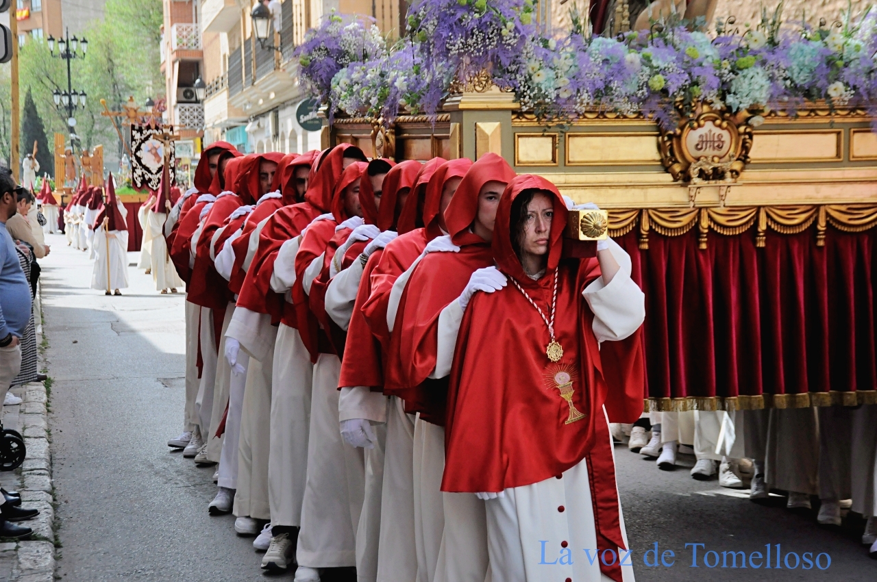 los nazarenos de esta señera cofradía visten de blanco y rojo.
