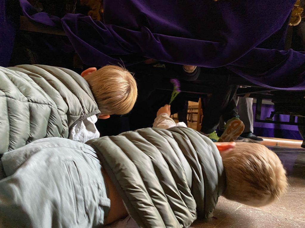 Pero lo mejor para ellos estaba por llegar y fue al finalizar procesión. Y es que al levantarse la tela que cubría el interior de trono, su padre les dijo que pasaran…a empujar también. Sin tener conciencia de ello, Manu y Nacho, durante unos escasos pero fundamentales metros, participaban por primera vez de manera activa en la hermandad de la que su bisabuelo Carlos, hoy viéndolos complacido desde el Cielo, su abuela María del Pilar y su padre Fermín, y demás hermanos y hermanas la conforman.