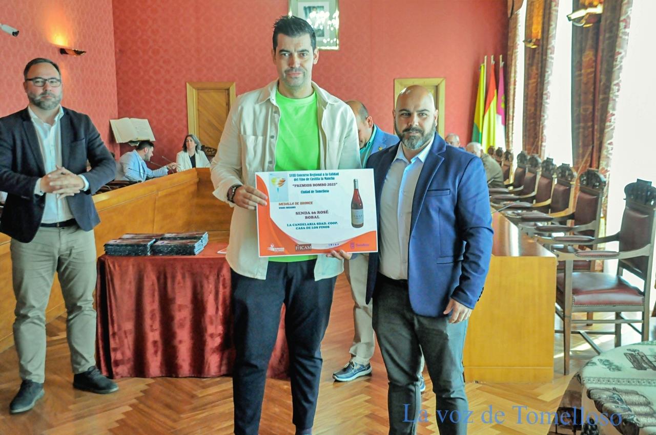 El salón de plenos del Ayuntamiento de Tomelloso ha acogido en la mañana de este sábado la entrega de los galardones correspondientes a la XVIII edición del Concurso Regional a la Calidad del Vino de Castilla-La Mancha, “Premios Bombo Ciudad de Tomelloso”, un certamen que organiza la Hermandad de San Isidro y que este año ha batido récords de participación con 177 muestras procedentes de 17 bodegas.
