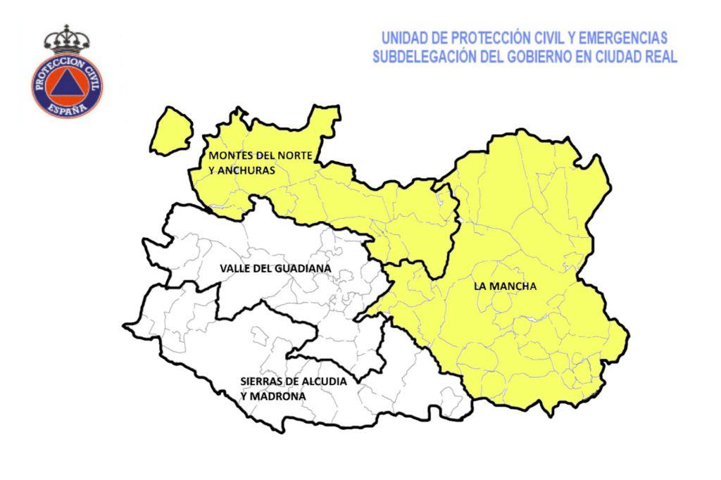 La Unidad de Protección Civil y Emergencias de la Subdelegación del Gobierno de España en Ciudad Real ha establecido nivel de alerta amarilla en la zona de La Mancha por lluvias para este miércoles 14 de mayo. Según se ha informado al Ayuntamiento, se trata de episodios de fenómenos meteorológicos adversos, establecidos por la Agencia Estatal de Meteorología, para hoy miércoles que afectan a la provincia de Ciudad Real y más concretamente a las zonas de La Mancha, Montes Norte y Anchuras. Con una probabilidad que se sitúa entre el 40 y el 70 %, se prevén lluvias con una precipitación acumulada en una hora de 15 mm en la franja horaria que va desde las 12:00 h a la medianoche. En el comunicado se advierte de la probabilidad que las tormentas vayan acompañadas de granizo. Desde el Ayuntamiento de la ciudad se advierte de esta situación a los vecinos para que tomen las medidas oportunas ante la posibilidad de estos fenómenos meteorológicos adversos.