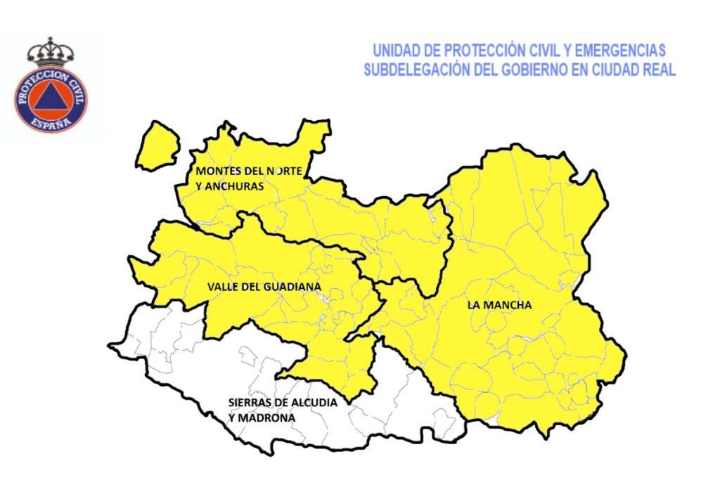 La Unidad de Protección Civil y Emergencias de la Subdelegación del Gobierno en Ciudad Real informa que para este miércoles se ha establecido el nivel de Alerta Amarillo por la posibilidad de fenómenos meteorológicos adversos en diversas zonas de la provincia de Ciudad Real, entre ellas, La Mancha. Según indican se prevén tormentas con una probabilidad de entre un 40 y un 70 %. La hora del aviso se ha establecido hasta la medianoche de este miércoles 11 de junio. Estas tormentas pueden llevar asociadas fuertes rachas de viento y granizo.