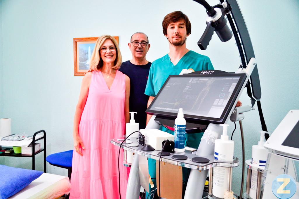 La entrevista tiene lugar en las instalaciones del centro en la calle Juan José Rodrigo y se incorporará al final, Ángela, esposa de Manuel, que desempeña también un rol clave en una empresa familiar que ha sabido ir adaptándose a las exigencias de los tiempos, invirtiendo en los equipos más avanzados.  Nada más entrar nos encontramos con un equipo de terapia ondas de choque y una bomba diamagnética que logra activar la regeneración de los tejidos dañados y la estimulación de las células corporales que interesen en un momento dado y, algo esencial para cualquier paciente; elimina el dolor.