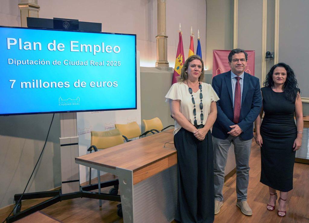 El presidente de la Diputación de Ciudad Real, Miguel Ángel Valverde Menchero, ha presentado esta mañana un Plan de Empleo propio de la institución provincial para 2025, que contará con una dotación económica de 7 millones de euros y permitirá la contratación directa de más de 1.000 personas desempleadas en la provincia. Valverde, que ha estado acompañado por la vicepresidenta responsable de Promoción Económica, Rocío Zarco, y por la vicepresidenta del área de Asistencia a Municipios, Maribel Mansilla, ha insistido en el carácter autónomo y municipalista del plan, que otorga plena libertad a los ayuntamientos para decidir tanto los perfiles a contratar como los proyectos a desarrollar.