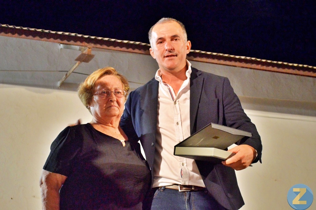 Cerezo recordó episodios entrañables de su niñez o de lejanas fiestas que vivía intensamente “en un barrio de buena gente que luchó por salir adelante, en el que las puertas de las casas estaban abiertas y entrabas y salías cuando querías”. Recordó con emoción a su padre, fallecido meses atrás, y a su madre, Isabel, que la acompañó en el acto y con la que se fundiría en un largo abrazo al concluir su pregón. Al final, su madre, muy emocionada, le hizo entrega de una placa conmemorativa en medio de la ovación de todos los asistentes.
