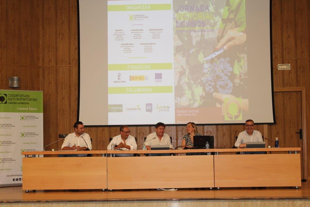 La directora general ha asistido en Tomelloso a la Jornada Sectorial de Vinos de Cooperativas Agro-alimentarias, junto a su director, Juan Miguel del Real, y allí ha explicado que la campaña de vendimia, que empezará en unas semanas, se plantea con optimismo por el nivel actual de existencias y una previsión de cosecha media.