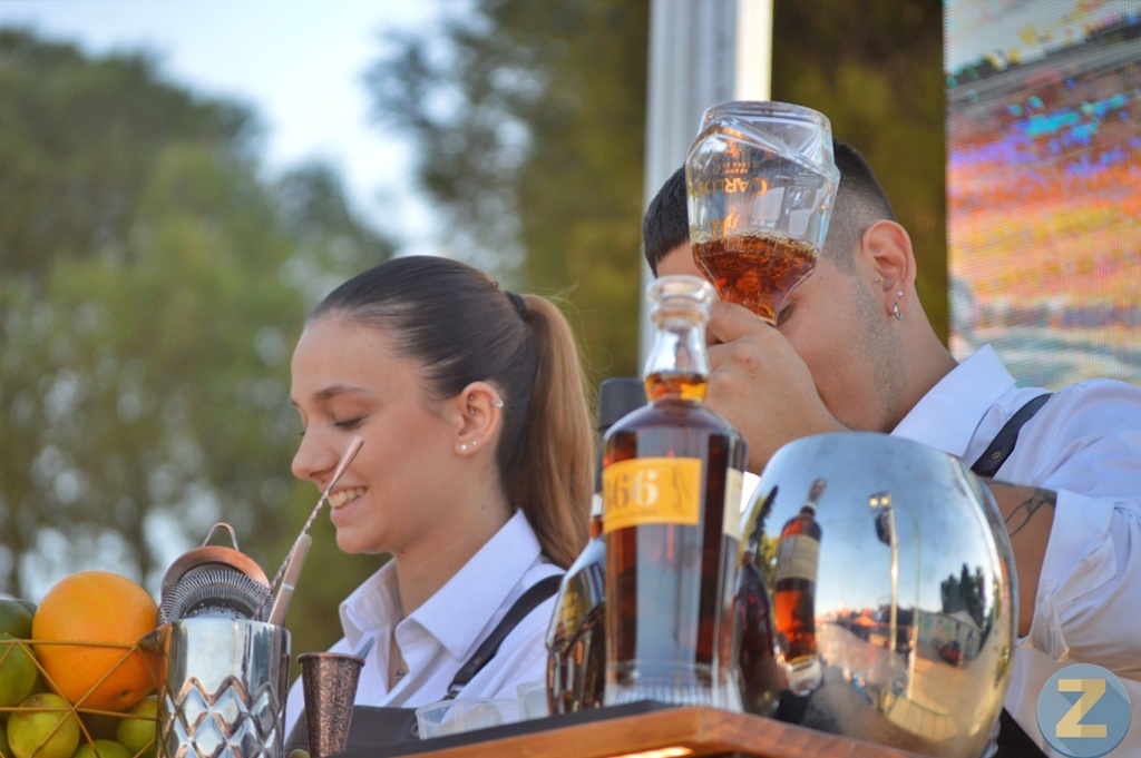 Insistió Virgina Martín en varias ocasiones que los brandys de Osborne “son un producto de la Mancha envejecido en el Puerto de Santa María, es decir, es un producto tan andaluz como manchego”. Aportaba datos e información Virginia, mientras Laura e Iván se aplicaban en la elaboración de dos cócteles con los tres grandes reservas: Carlos I, Conde de Osborne y 1866. Con el primero prepararon dos cócteles: el denominado Carlos Fizz que contiene una parte de Carlos I, zumo de limón y de naranja y agua con gas, además de un trozo de naranja y una brocheta de aceitunas; y por otra parte, elaboraron el Carlos Cooler en el que el brandy Carlos I con gingered. También daría a probar los otros dos reservas, Conde de Osborne y 1866 solo con hielo.