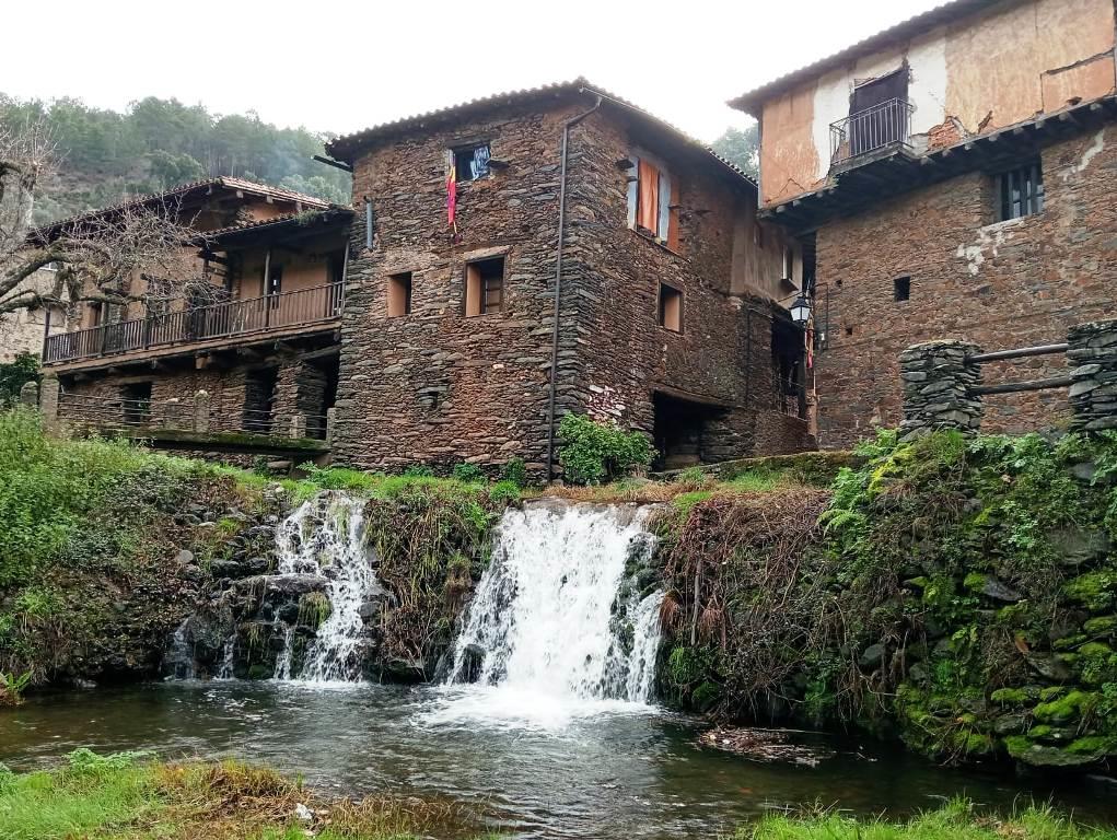 Cae una fina lluvia, suficiente para recoger a las gentes dentro de los muros de sus casas. Los aleros de los tejados lanzan el agua al centro de sus estrechas y empinadas calles y ésta corre con brío pendiente abajo en busca del Árrago. Las chimeneas humean y crean una atmósfera que cada vez es más difícil encontrar. Huele a leña de roble, a campo, a la memoria de la infancia. Es ahí cuando despiertan unos sentidos que tal vez estaban entumecidos por el fresco y la humedad y que habían sufrido un choque después de bajar de la comodidad del coche. La lluvia hace que las aguas canten con distintos tonos desplegando una creación inimitable. La lluvia, los canales, las fuentes, el río; cada uno marca una musicalidad distinta. Sin embargo, las aves sólo miran, pero no hacen sonar sus siringes. Parecen estar tan tímidas como los paisanos ante este día plomizo que invita a recogerse junto a la lumbre. Echaba de menos el tacto de la brisa otoñal en la cara y el resbalar de la lluvia por las mejillas y las manos. Es una llovizna mansa pero que cala. De una pequeña puerta sale olor a café de puchero y castañas asadas. Es tal que casi puedo saborearlas. Pero si hay algún sentido que aquí se desboca es la vista. Robledillo de Gata y su entorno son todo un espectáculo visual.