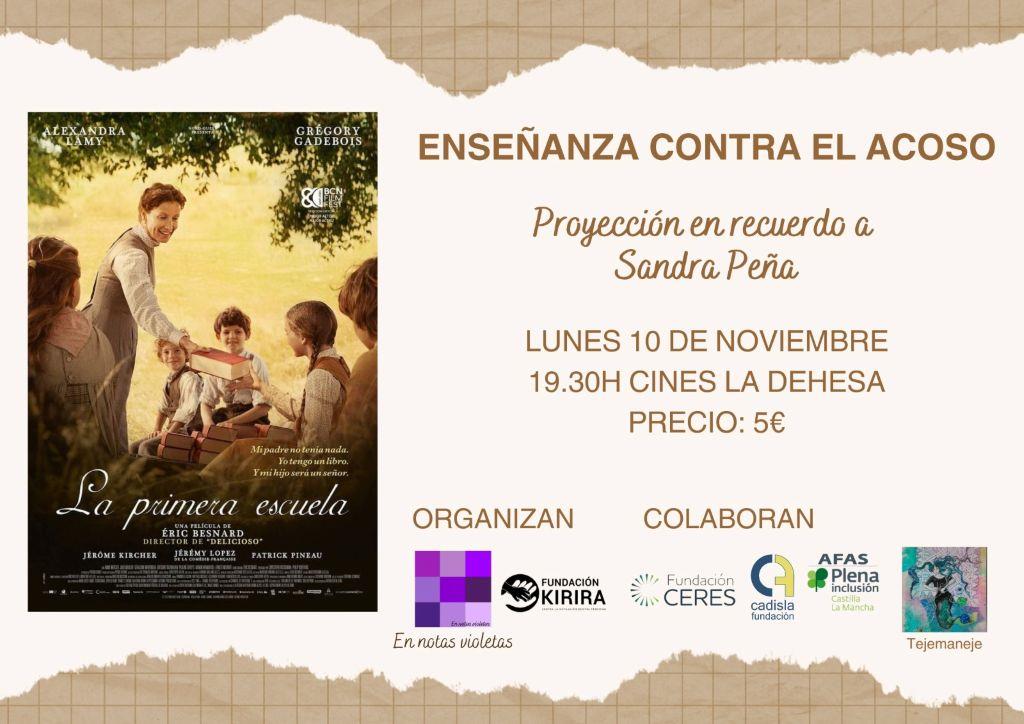 El próximo lunes 10 de noviembre, a las 19:00 horas, los Cines La Dehesa de Tomelloso acogerán una cita cinematográfica con un fuerte componente social y emocional. El grupo colector En Notas Violetas y la Fundación Kirira organizan la iniciativa “Enseñanza contra el acoso”, una actividad de sensibilización que busca visibilizar y combatir el acoso escolar. La jornada se celebrará en recuerdo de Sandra Peña, la menor que se suicidó tras sufrir acoso en Sevilla.
