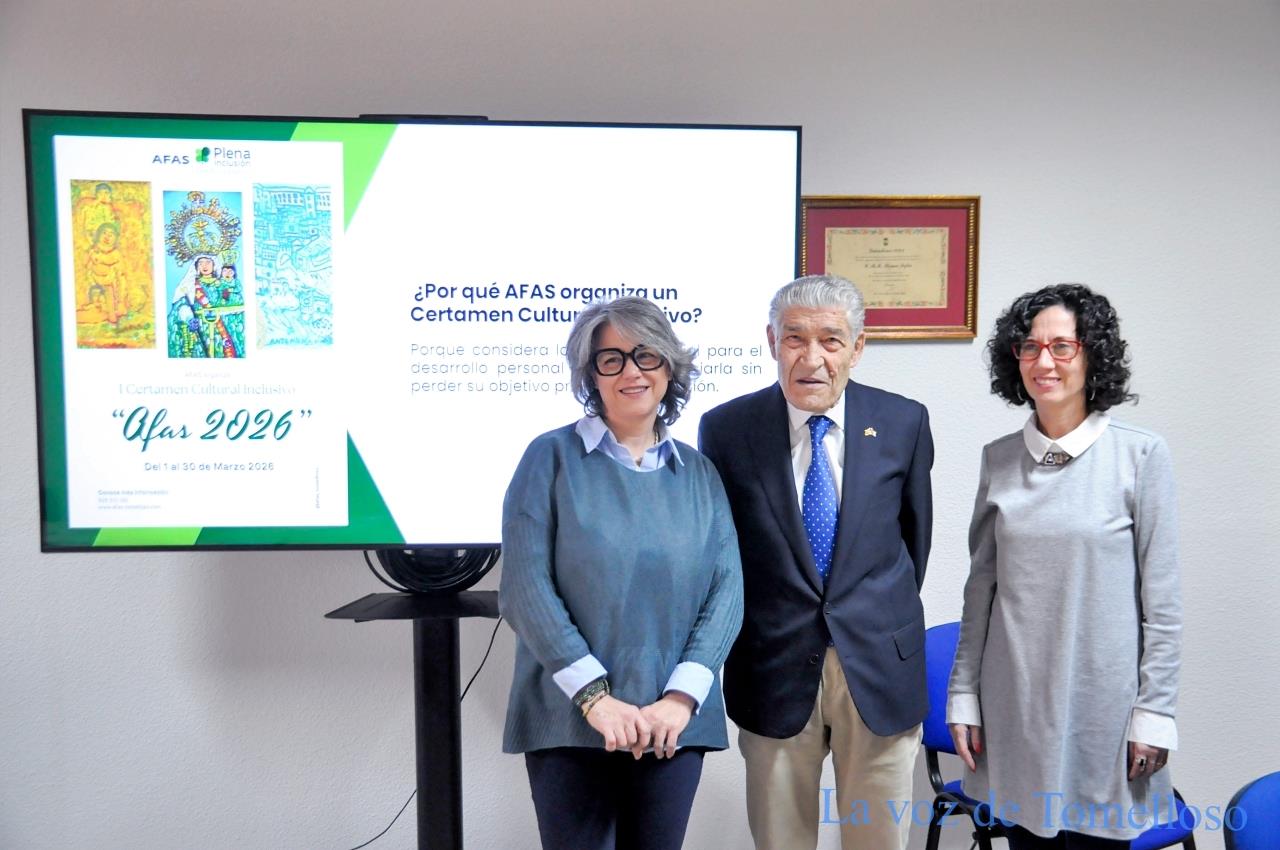 La Asociación de Familiares y Amigos de las Personas con Discapacidad (AFAS) ha presentado este miércoles su I Certamen Cultural Inclusivo, un proyecto con el que la entidad inicia el camino hacia su 50 aniversario, que se conmemorará en 2027. El presidente de AFAS, Luis Perales, acompañado por Pilar López y Rocío Carretero, miembros de la Comisión de Cultura, ha dado a conocer los detalles de esta iniciativa que “quiere situar la cultura en el centro de la inclusión”.