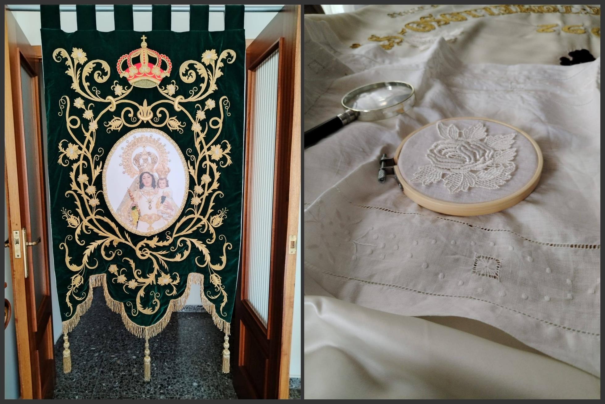 La Hermandad restaura el estandarte de la Virgen de las Viñas, obra de Carmen Espinosa