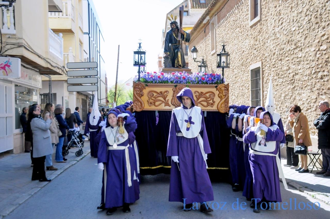 Le sigue Jesús del Perdón, con penitentes de morado y