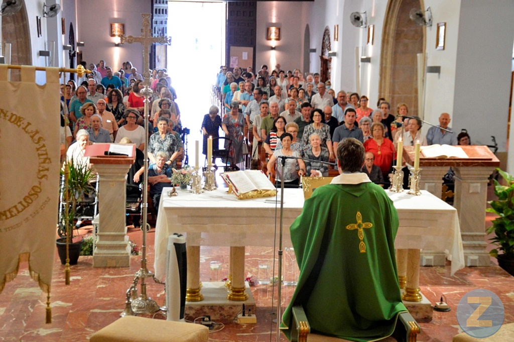 La parroquia de la Asunción se llenó en una mañana calurosa del 25 de agosto, festividad local, con la presencia de autoridades, hermandades, madrinas, padrinos y cientos de fieles